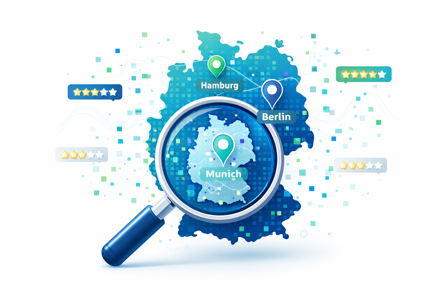 Wir lassen unsere spezialisierte Kurator-Engine über tausende Bewertungen laufen. Erhalte in Sekunden eine objektive Analyse für Berlin, Hamburg oder weltweit – statt Stunden zu lesen.